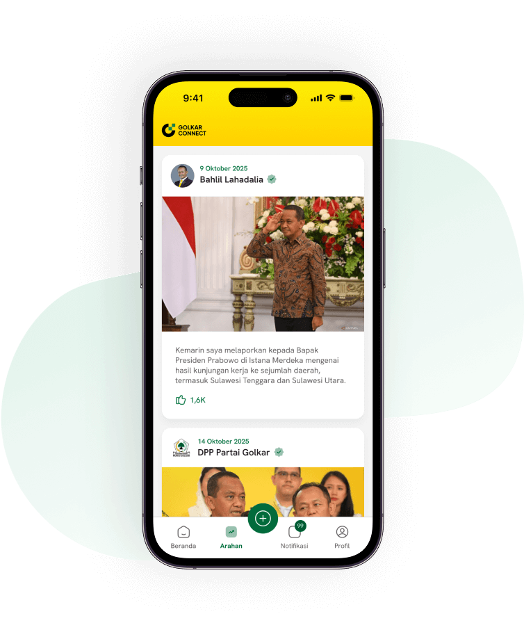Fitur Arahan menyajikan pesan strategis, keputusan penting, dan panduan resmi dari Ketua Umum serta jajaran pimpinan. Semua disusun untuk menjadi acuan bersama dalam menjaga keselarasan langkah dan menggerakkan kader menuju tujuan organisasi.